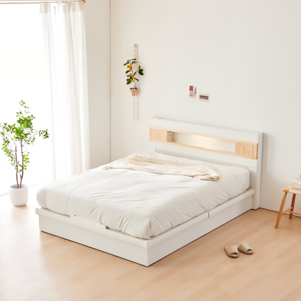 [위클리딜] 동서가구 이즈 카이 편백 LED 조명 수납 침대 프레임 SS/Q (+매트리스선택)