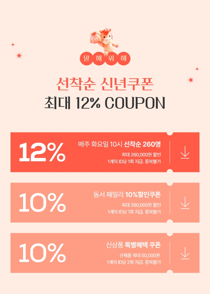 - - 전 상품 쿠폰 적용이 가능하나 일부 상품에 한하여 적용이 불가 할 수 있습니다.