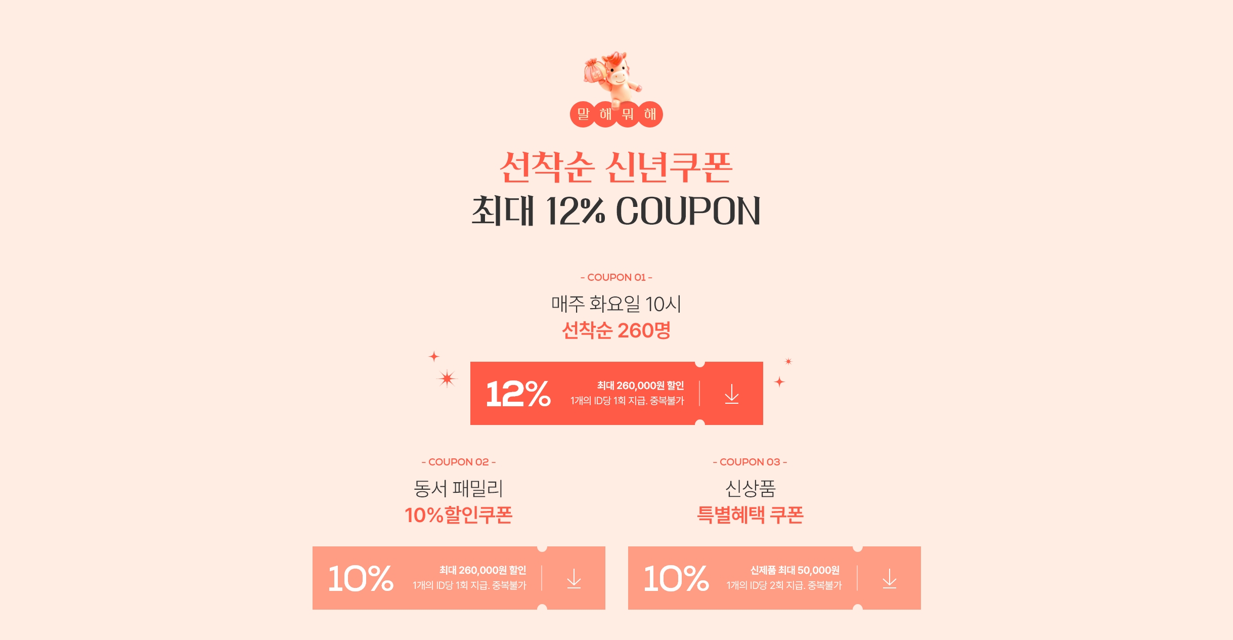 - - 쿠폰 별 발급 수량 제한이 있을 수 있습니다.
