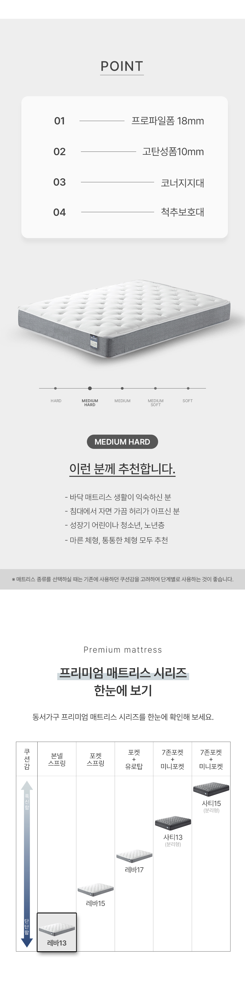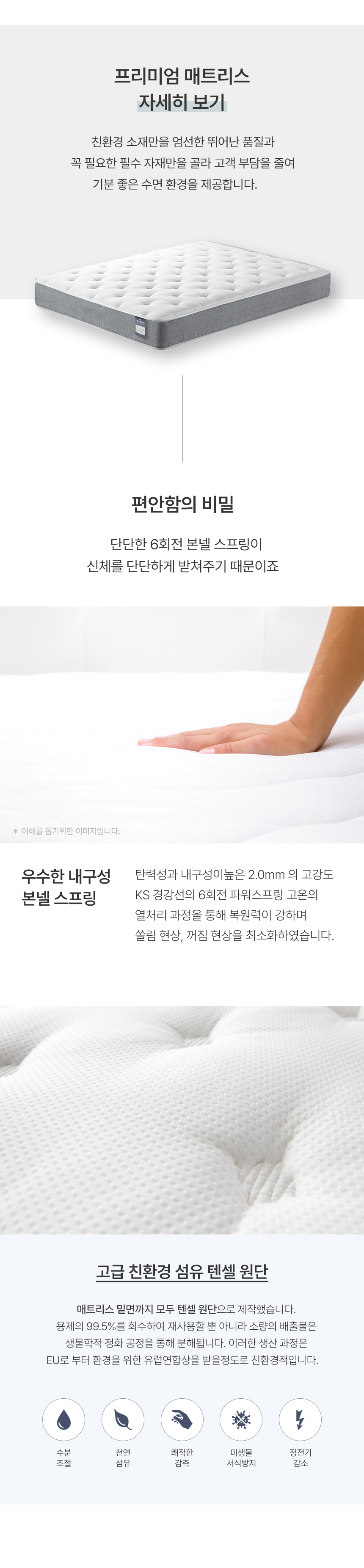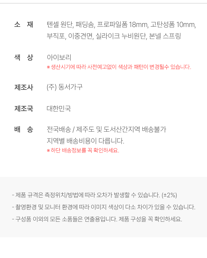 | 매트리스 상품은 피부가 직접 닿는 제품으로, 위생 관리상 포장 개봉 및 사용 후에는 교환/환불이 불가합니다. | |