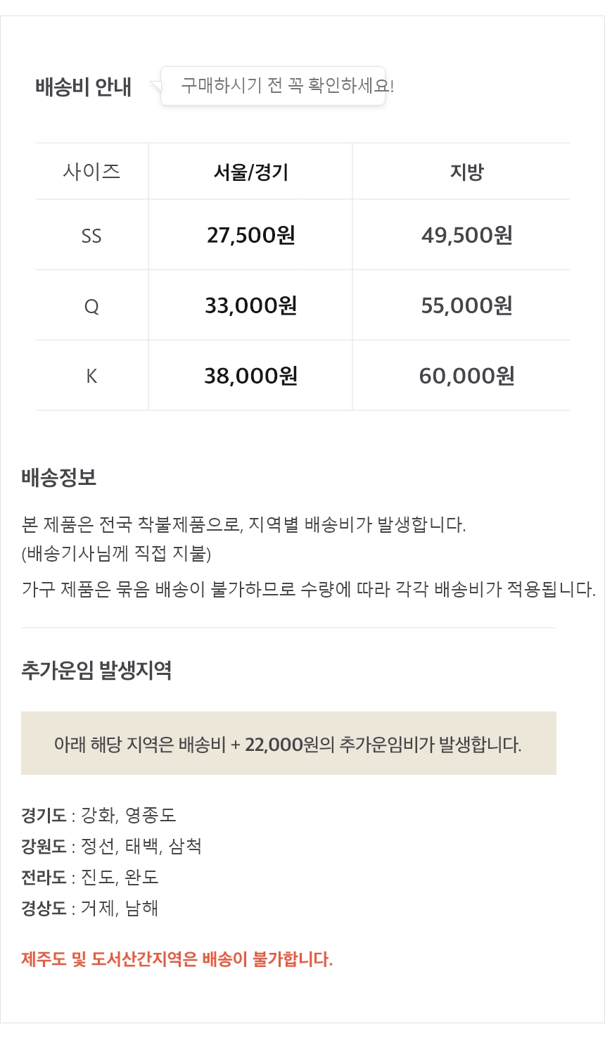 수량별/지역별로 착불배송비 차등적용됩니다 (상세페이 참조)