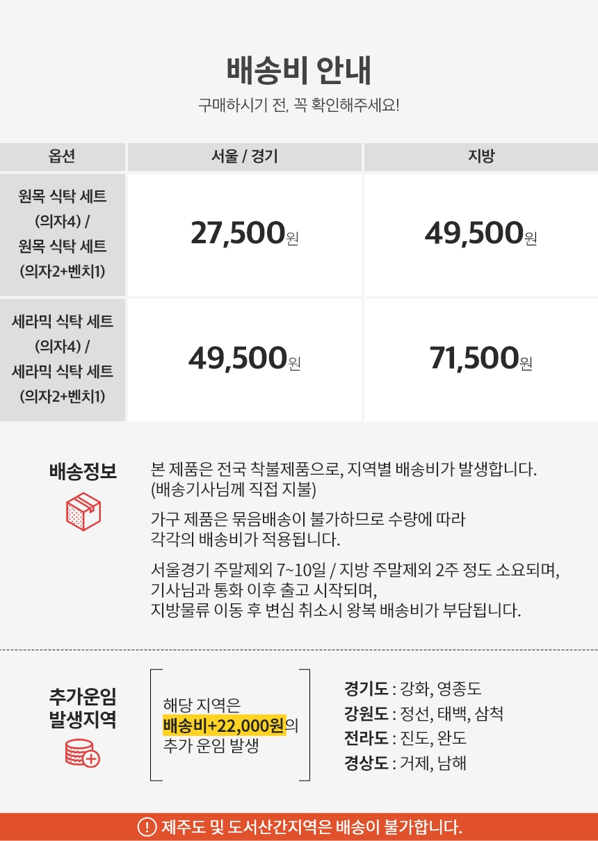 | 기사님 방문 시 제품에 이상이 없을 경우, 왕복 배송비는 고객 부담입니다. | |