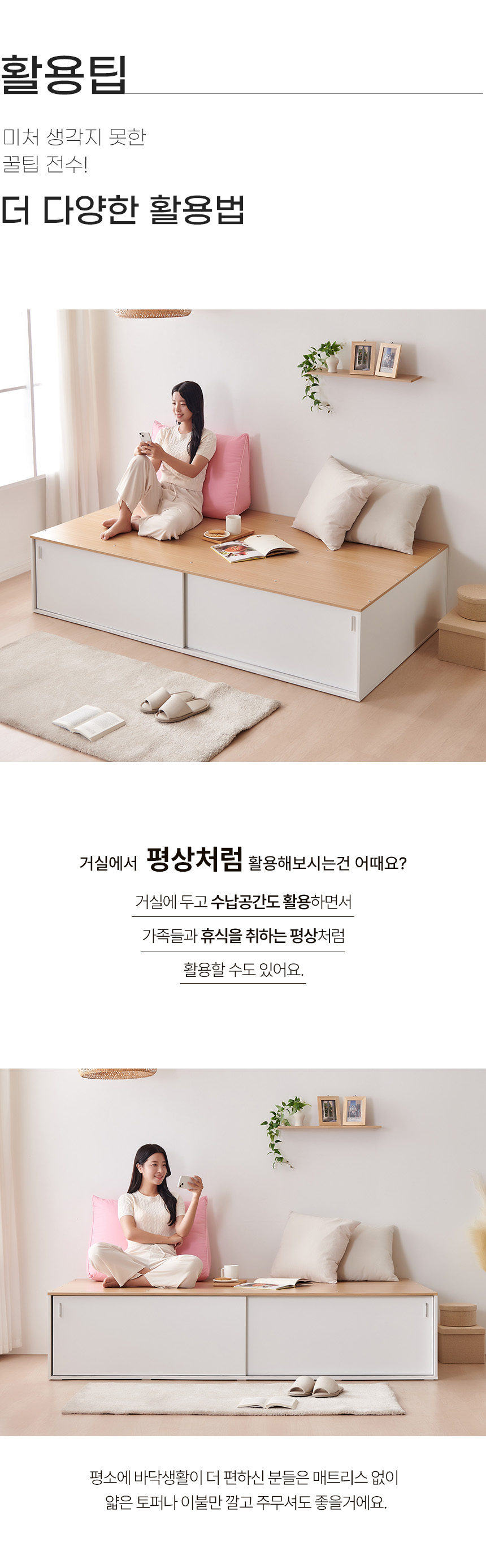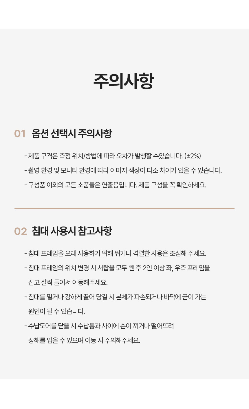 | 매트리스 상품은 피부가 직접 닿는 제품으로, 위생 관리상 포장 개봉 및 사용 후에는 교환/환불이 불가합니다. | |