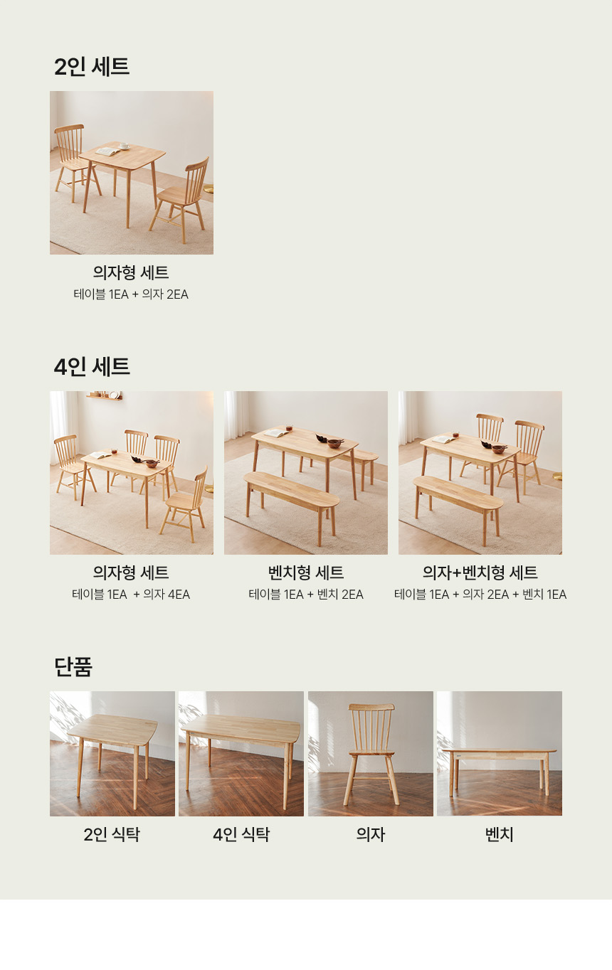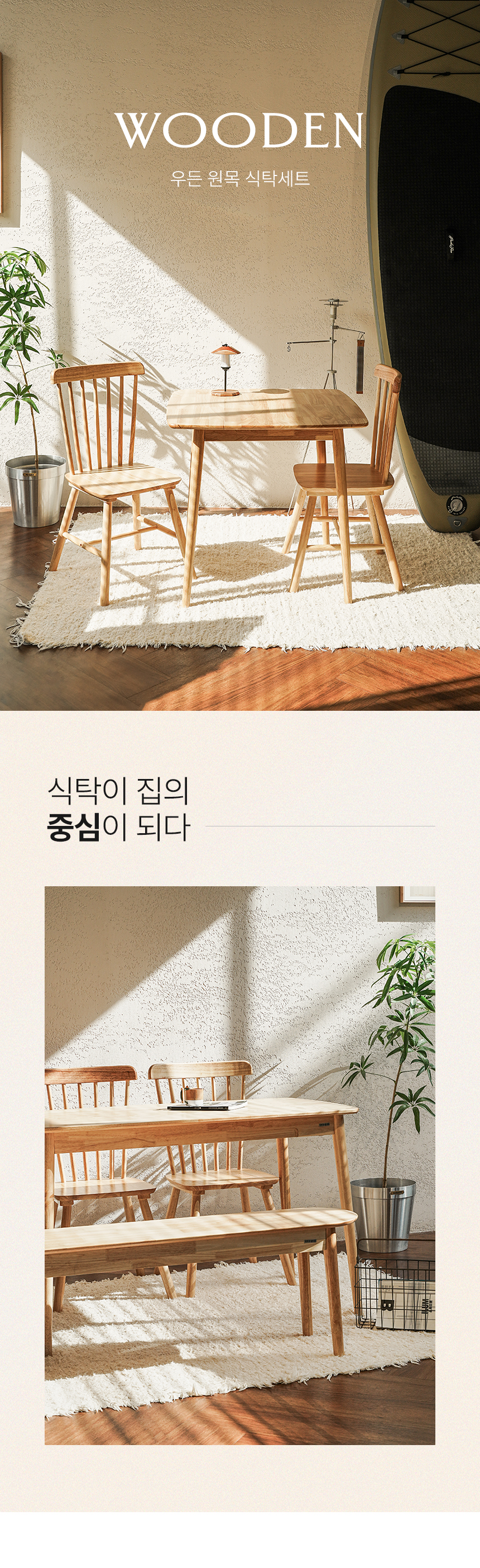 이미지 확대보기[단독특가]동서가구 우든 고무나무 원목 식탁 의자 벤치 세트 모음
