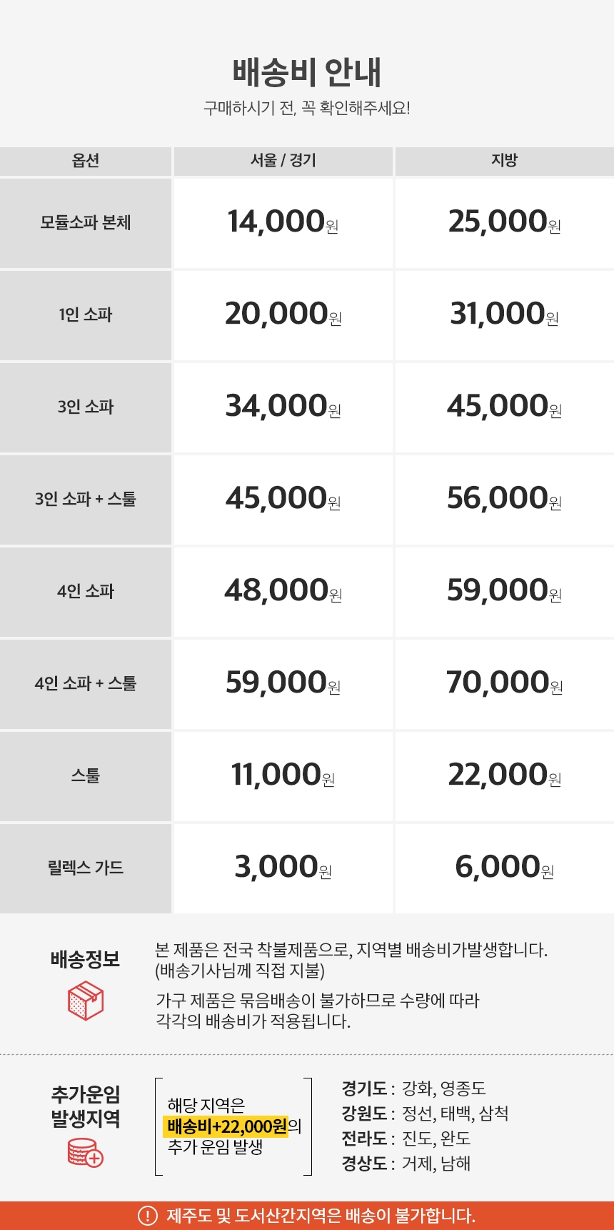 배송·설치비용 배송비 상품상세참조