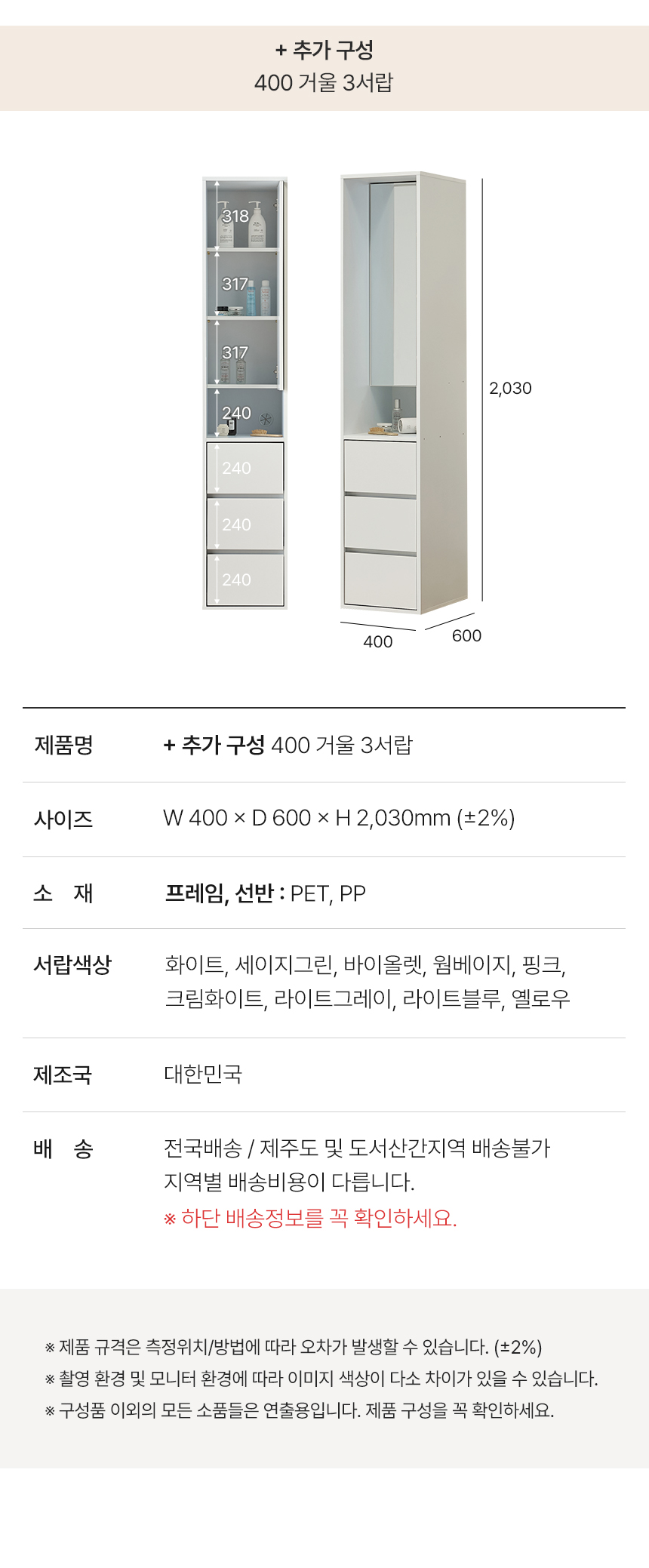 | 기사님 방문 시 제품에 이상이 없을 경우, 왕복 배송비는 고객 부담입니다. | |