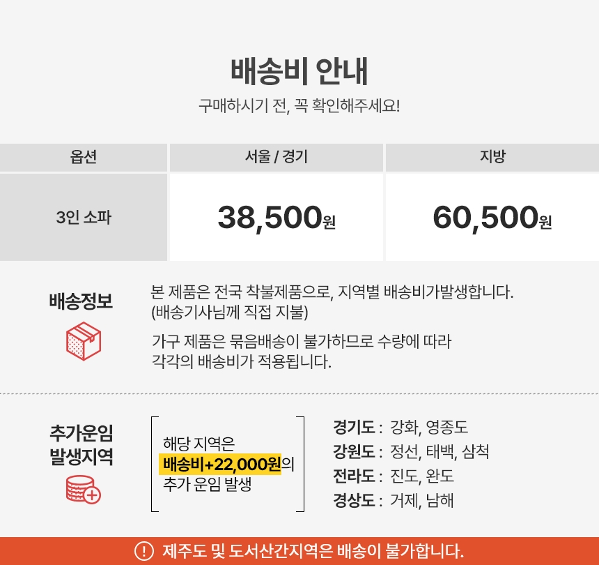 배송·설치비용 배송비 상품상세참조