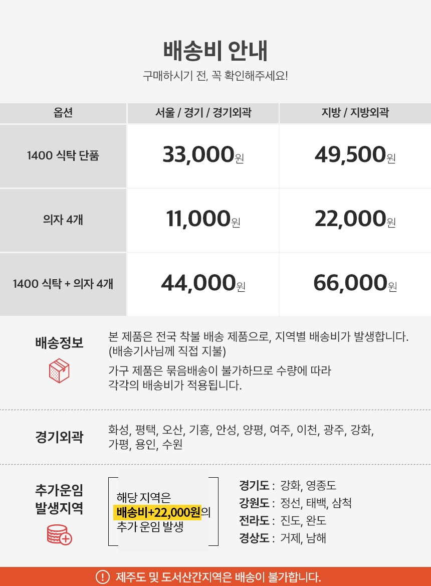 배송·설치비용 배송비 상품상세참조