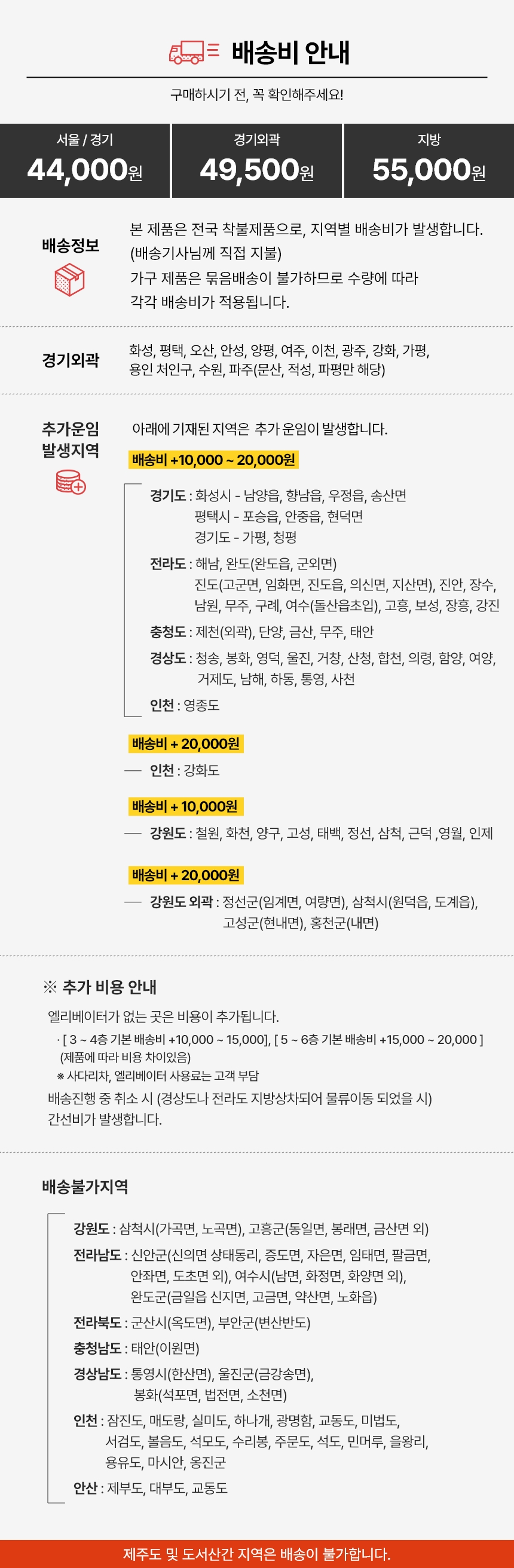 배송·설치비용 배송비 상품상세참조