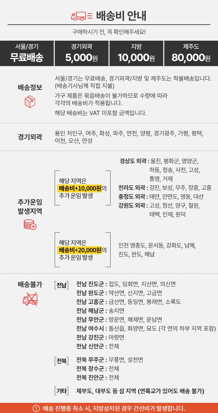 배송비 상세 하단 참조, 지방 추가배송비발생